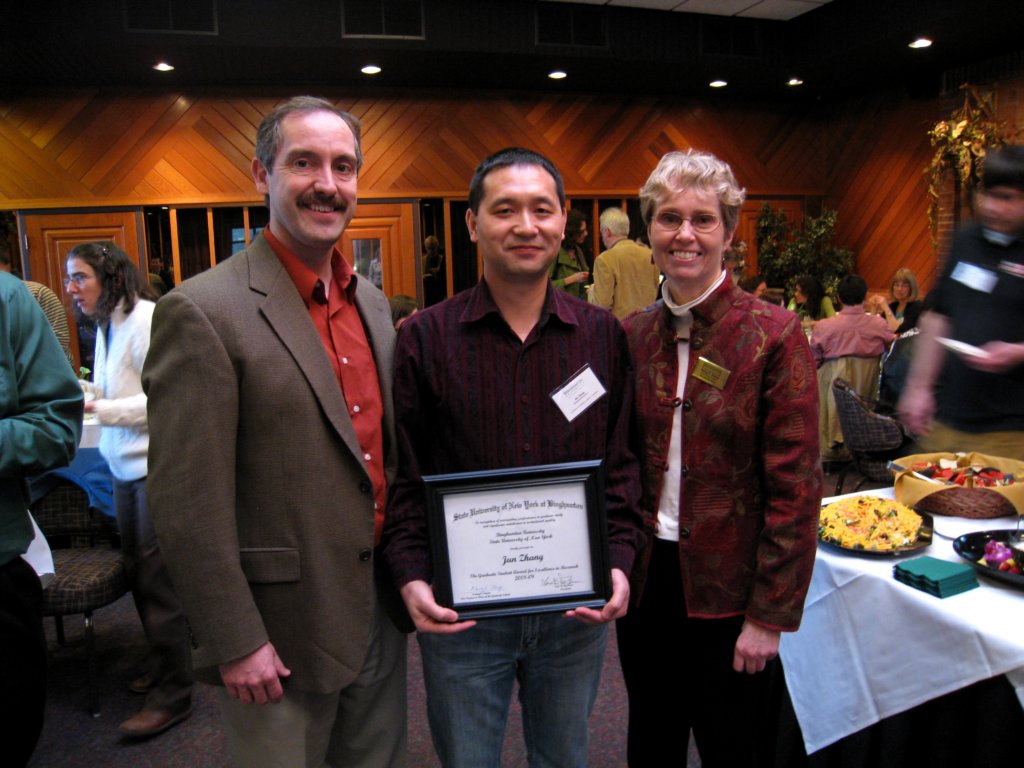 Jun (the most right) with Vice President Gerald Sonnenfeld (1st), Provost Mary Ann Swain (2nd), President Lois B. DeFleur (3rd), Vice Provost and Dean Nancy E. Stamp (4th), Associate Dean Dara J. Silberstein (5th), from left to right.